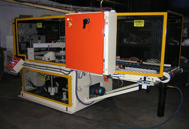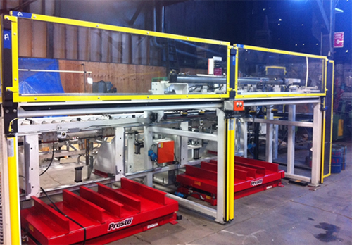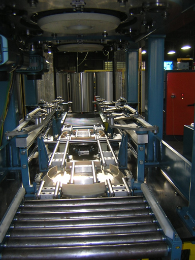 The Welding Complex consists of a sheet feed system incorporating two bundle staging stations configured in tandem or an A/B arrangement. Each station is equipped with a hydraulically actuated lift platform on which steel drum body sheets rest atop steel pallets. Loading of pallets to the each of the bundle stations is provided by customer supplied fork lift truck |